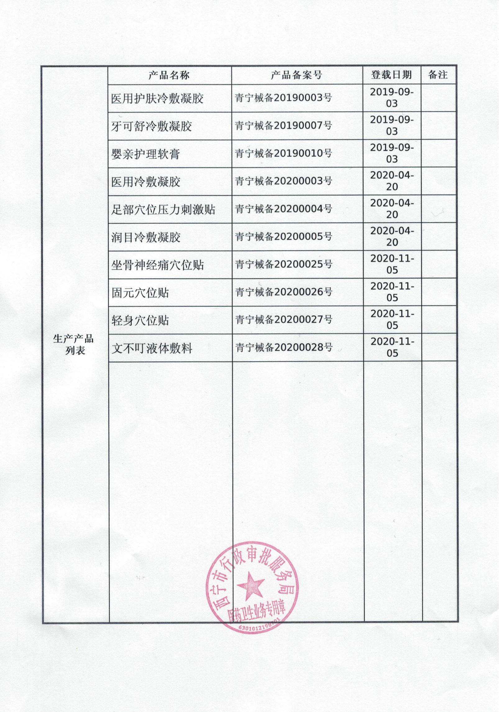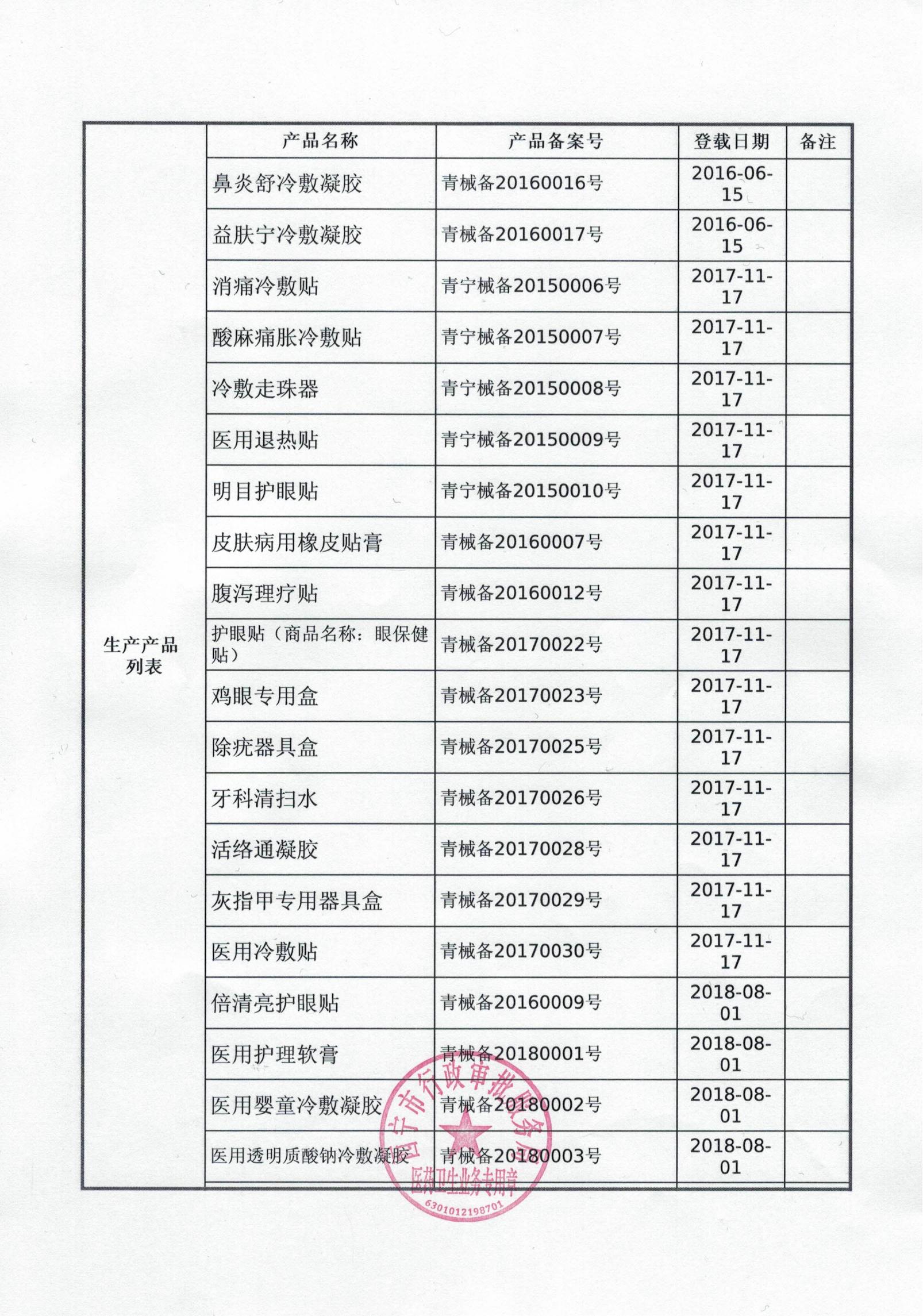 第一類醫(yī)療器械生產(chǎn)備案憑證