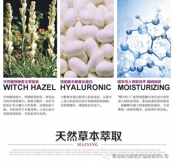 蠶絲本身蘊(yùn)含18種氨基酸,有效補(bǔ)充肌膚組織彈性蛋白與膠原蛋白質(zhì),消除面部細(xì)紋,迅速改善皮膚的彈性,復(fù)活細(xì)胞,防止黑色素形成,增白肌膚。